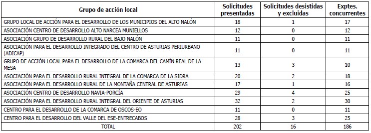 En esta convocatoria se han presentado un total de 202 solicitudes entre las dos medidas, excluyéndose un total de 16 solicitudes, mientras que la cifra de expedientes que concurren se elevan a 186.